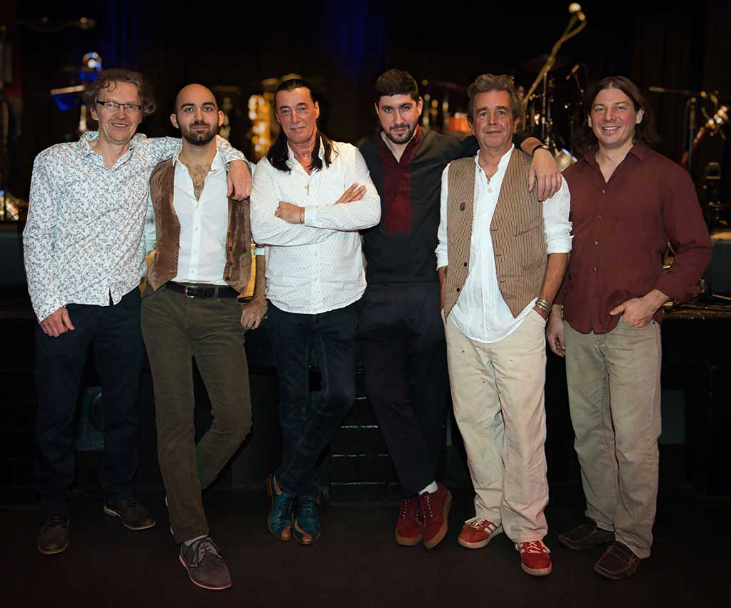 Das Absinto Orkestra ist in der Folk- und Weltmusik-Szene einer der Top-Liveacts. Ihre Konzerte führen musikalisch in die Balkan-Metropolen, drehen eine Runde durch den Mitttelmeerraum, biegen kurz vor dem Ural ab und mischen dabei Eigenes mit Geborgtem. Alles dreht sich um Liebe und Vergänglichkeit, Witz und Sehnsucht, Melancholie und Rausch. Die Zusammenarbeit der beiden Acts begann 2014 und beschert einer begeisterten Zuhörrerschaft höchst spannende Begegnungen. Die fünf Absintos rollen mit perfekt eingespieltem Gitarren- & Bassgroove, furiosen Saxophon- & Geigenmelodik sowie kernigem Gesang den Teppich aus für die temperamentvolle Sologitarre des Meisters. Ein musikalisches Feuerwerk erster Güte – zu hören auch auf der gemeinsamen CD „Rot“.