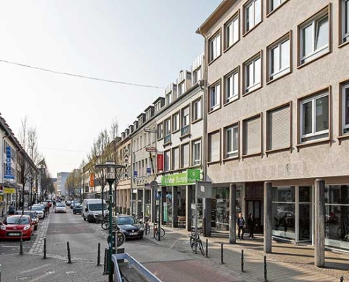 Foyer, StadtgeschichteDie Schulstraße plante Stadtbaumeister Georg Moller im Zuge der Erweiterung der Stadt nach Westen am Beginn des 19. Jahrhunderts als eine Verbindungsstraße zur Altstadt.