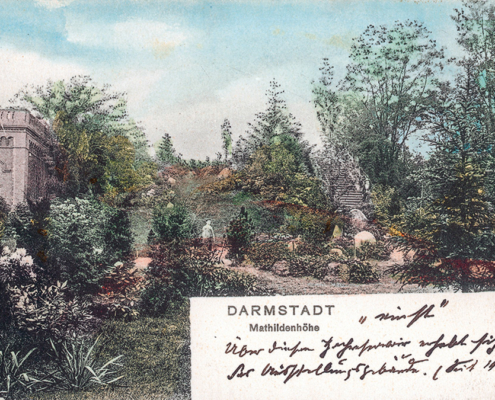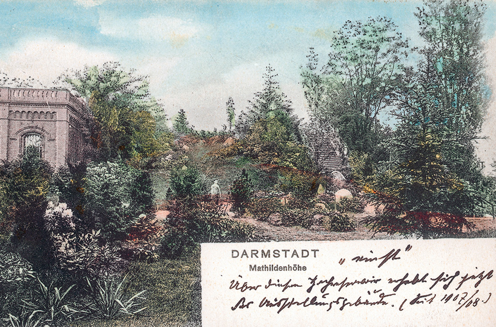 Der Wasserspeicher, gebaut nach Plänen des Ingenieurs Otto Lueger, lag damals über den Darmstädter Wohngebieten.