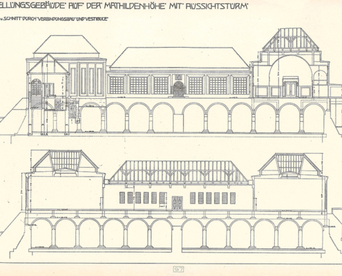 Das Ausstellungsgebäude auf der Mathildenhöhe ist auf dem Dach des Wasserreservoir erbaut worden – Foto aus dem Jahr 2014