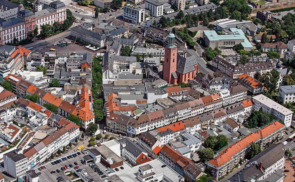 Luftaufnahme Ludwigsplatz, Stadtkirche, Schulstraße aus dem Jahr 2008