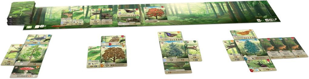 Karte für Karte entsteht in der Kartenauslage vor jedem Spieler ein vielfältiger Mischwald aus Laub- und Nadelbäumen.