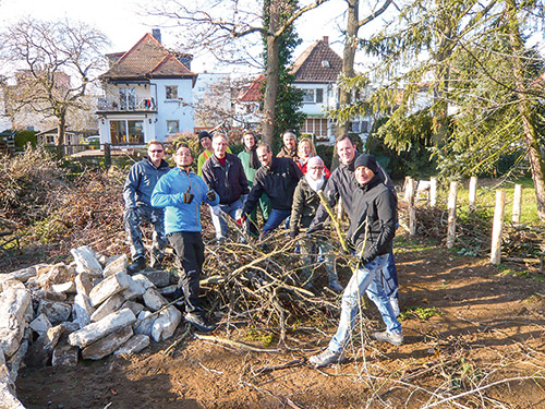 Gemeinsam mit engagierten Nachbarn wird die Fläche das gesamte Jahr über gepflegt und unterhalten. Jeder kann mitmachen!
