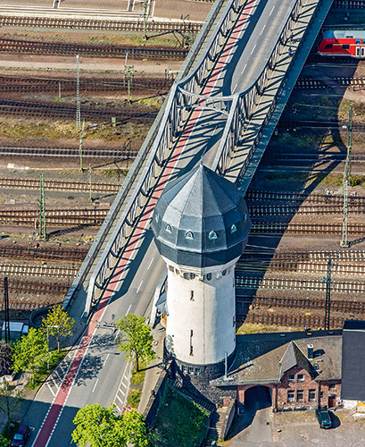 Mit der Verbreitung der Eisenbahn ab 1835 in Deutschland mussten leistungsfähige Wasserversorgungseinrichtungen geschaffen werden. Die sogenannten Wasserkräne zum schnellen Befüllen der Lokomotiven wurden von Wassertürmen gespeist, die meist ihr Wasser aus nahe angelegten Tiefbrunnen erhielten. Mit dem schnell wachsenden Eisenbahnnetz und der immer höheren Zugfrequenz wuchs der Wasserbedarf um ein Vielfaches. Die Wassertürme wurden immer höher und größer. Sie mussten betriebssicher sein, ausreichend Druck erzeugen und genügend Vorrat haben. Verschiedene Techniken wurden entwickelt. Anfangs aus Eisen, später auch aus Beton gab es Flachboden-, Hängeboden-, Stützboden- und Kugelbehälter, geschlossen oder offen.